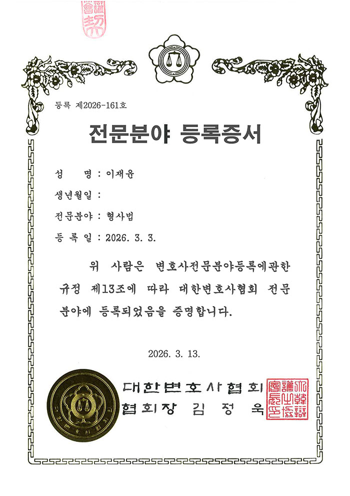 형사법 전문분야 등록 변호사